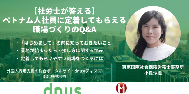 8月92020事務所のお知らせ 第2弾:【ベトナム人社員が舌打ち?】海外展開するなら必見!社労士が教える、ベトナム人社員が辞めない職場のつくり方とは? にて執筆をさせていただきました。 詳細はこちらからご覧ください。 ↓↓↓↓↓↓ https://prtimes.jp/main/html/rd/p/000000042.000040185.html カテゴリー: 事務所のお知らせ小泉 沙織から2020年8月9日 Share this post Facebook で共有Facebook で共有 つぶやきTwitter で共有 ピンするPinterest で共有 LinkedIn で共有LinkedIn で共有 投稿者: 小泉 沙織 投稿ナビゲーション前へ前の投稿:時間外労働・休日労働に関する協定届(2021年4月1日以降版)次へ次の投稿:第一弾:外国人採用支援の総合ポータルサイトのdnus(ディヌス)DOC株式会社より取材を受けました。